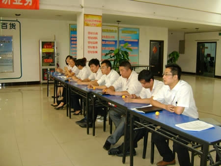 經(jīng)過(guò)兩番試卷考核之后,于2011年6月22日下午15:00時(shí)進(jìn)行了第一場(chǎng)實(shí)操PK賽——我來(lái)講業(yè)務(wù)部分的競技。此次比賽均采用現場(chǎng)電腦隨機抽題,比賽人員現場(chǎng)準備現場(chǎng)作答。業(yè)務(wù)展示題目涉及到賣(mài)場(chǎng)基層管理人員最核心、最基本的崗位知識、技能和職業(yè)素養,如促銷(xiāo)管理、員工管理、VIP顧客管理、目標責任管理等。