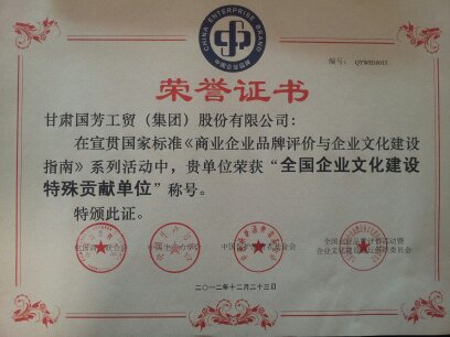 2012年度“全國企業(yè)文化建設特殊貢獻單位”榮譽(yù)證書(shū)