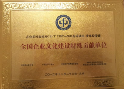 2012年度“全國企業(yè)文化建設特殊貢獻單位”榮譽(yù)獎牌