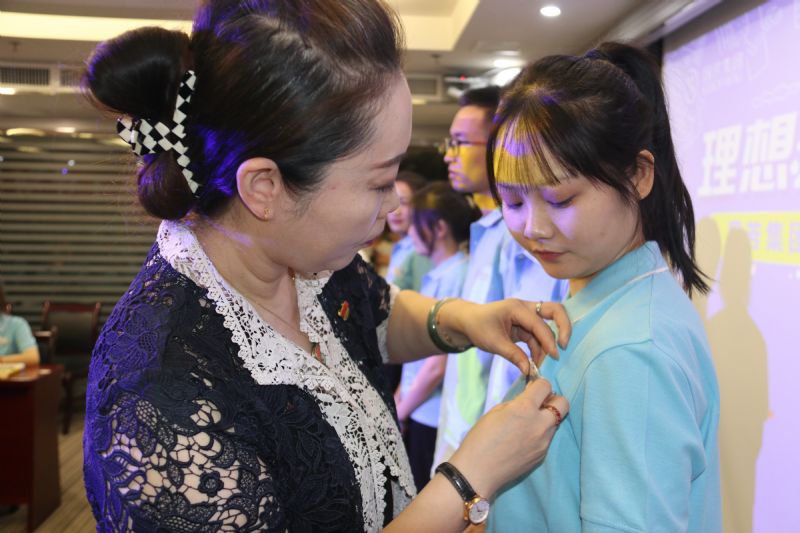 在入職儀式進(jìn)入尾聲之際,進(jìn)行授牌及贈書(shū)儀式,由國芳集團各位領(lǐng)導為新一屆管理培訓生佩戴工卡并合影留念,從此刻起,數十名管理培訓生便正式成為了國芳集團中的一員。