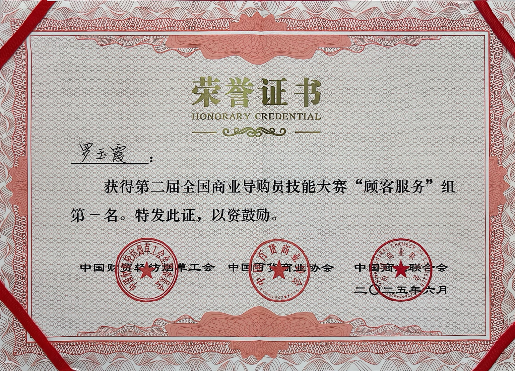 2025年6月5日—6日,由中國財貿輕紡煙草工會(huì )、中國百貨商業(yè)協(xié)會(huì )、中國商業(yè)聯(lián)合會(huì )、重慶市總工會(huì )共同舉辦的“第二屆商業(yè)導購員技能大賽”決賽在重慶舉行。通過(guò)企業(yè)層層選拔、線(xiàn)上展示、專(zhuān)家初評,60位選手從全國523名參賽選手中脫穎而出,在決賽現場(chǎng)展開(kāi)激烈的服務(wù)技藝比拼角逐,蘭州國芳百貨員工代表羅玉霞參與并榮獲“顧客服務(wù)”組第一名。