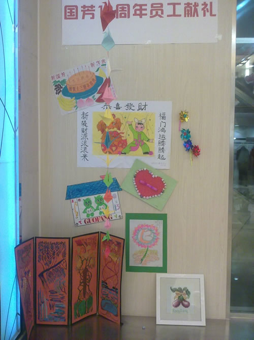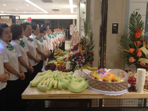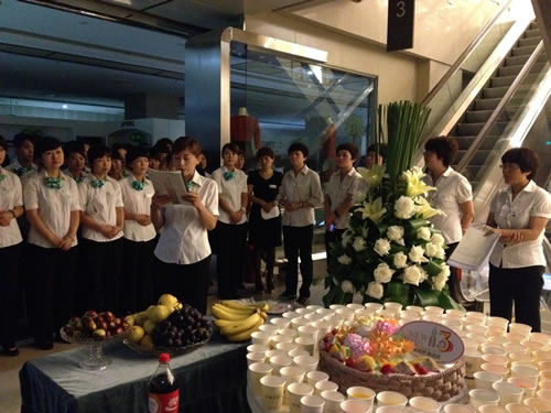 2012年9月8日,國(guó)芳集團(tuán)蘭州零售各店、各部門迎來(lái)了13周年的店慶盛典,今年的店慶大晨會(huì)我們延續(xù)了以往冷餐會(huì)的形式來(lái)慶祝國(guó)芳零售的13歲生日。冷餐會(huì)中穿插了店慶宣誓、唱生日歌、切蛋糕等精彩環(huán)節(jié),又增加了老員工店慶往事回顧和愛(ài)崗敬業(yè)案例分享,冷餐會(huì)最后全體管理人員以熱情的擁抱祝福了每一位員工,給大家?guī)嘏妥8。值得一提的是今年新加入了“員工獻(xiàn)禮”環(huán)節(jié),今年主要采取員工手工DIY的創(chuàng)意,讓大家動(dòng)手通過(guò)小工藝品和書(shū)畫(huà)等形式同工表達(dá)對(duì)國(guó)芳零售13周年店慶的祝福!并在店慶期間在賣場(chǎng)中間進(jìn)行了作品的展示,贏得了員工和顧客的一致好評(píng),給店慶增添了濃郁的人文色彩。