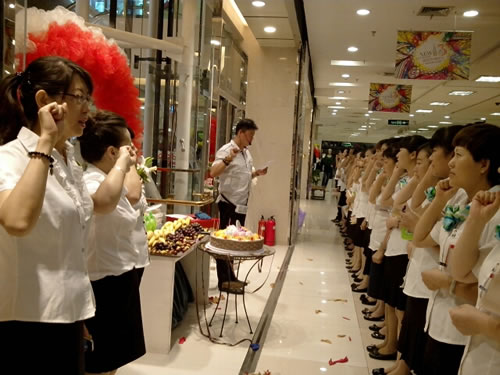 6、F6商品部管理人員帶領(lǐng)大家進(jìn)行店慶宣誓。