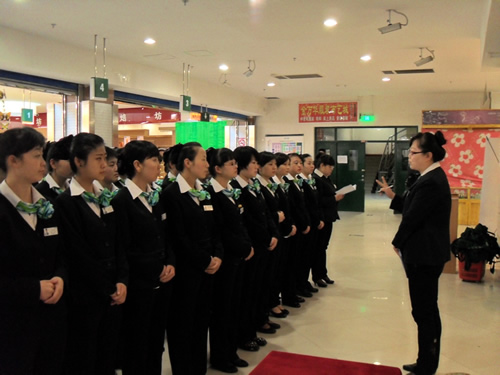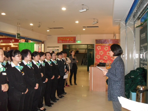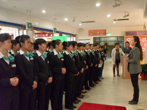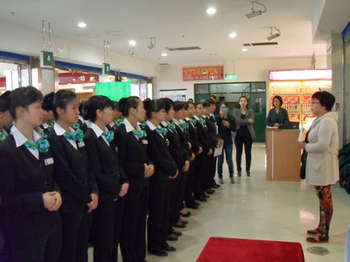 2013年4月9日是一個普通的工作日,但卻是國芳集團收銀部崗位技能管理水平提升和發(fā)展歷程上非常重要的一天,因為今天國芳集團零售板塊蘭州地區(qū)收銀員職業(yè)技能評定工作正式拉開帷幕。早上8點整,在蘭州國芳綜超廣場店正式召開了本次活動的動員會,動員會由收銀部經(jīng)理韓曉麗女士主持,蒞臨現(xiàn)場的公司領(lǐng)導有集團總裁助理、財務總監(jiān)余麗華女士,集團總裁助理、人力資源總監(jiān)孟麗女士,集團培訓經(jīng)理、蘭州百貨人力資源經(jīng)理孫曉輝女士,綜超人力資源經(jīng)理馬琳先生。
